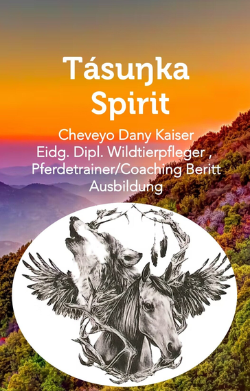 Durch mein Wissen und mein Können mit Pferden, und vielen Referenzen, erhielt ich von einer bekannten Shamanin den Namen für meine Arbeit- TÁSUŊKA SPIRIT und mein persönlicher neuer Name-CHEVEYO, was Geistkrieger bedeutet